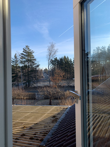 Der 12. ist im März schon wieder ein Samstag. Und so bin ich erst um 8:00 aufgestanden. Hier mein Blick aus dem Schlafzimmerfenster. Es scheint ein herrlich sonniger Tag zu werden. Und es war wieder kalt heute Nacht.