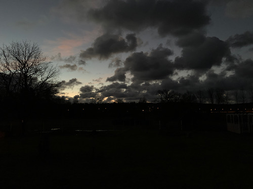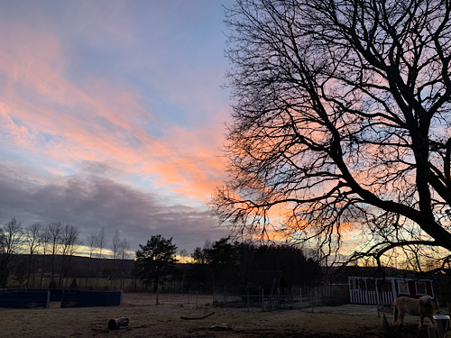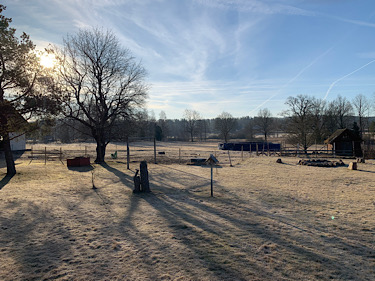 Kurz nach 8:00 Uhr. Blick aus dem Küchenfenster. Es war kalt. Jetzt noch -6°C. Guten Morgen Ponies.