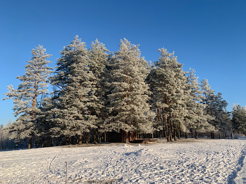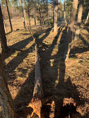 Pünktlich zum Neuen Jahr ist das Winterwunderland verschwunden. Der schöne Pulverschnee einfach weggetaut. Da der tiefe Boden nicht mit aufgetaut ist, konnte das Tauwasser nicht wirklich weg. Und das gibt Matsch. Nach anschließenden Kahlfrösten kam aber doch noch etwas Puderzucker zurück. Die krassen Wechsel von kalt zu warm führten zu heftigen Stürmen. In einer Nacht hat es mir vier Bäume abgerissen, zwei Kiefern und zwei Birken. Unsere Fichten in Deutschland sind Flachwurzler. Bei Sturm fallen sie mitsamt dem Wurzelteller einfach um. Kiefern haben eine Pfahlwurzel, die gibt nicht nach. Aber wenn der Sturm zu heftig wird, bricht irgendwann einfach der Stamm. Ich hatte sehr viel Glück: Die Bäume sind alle durchgefallen bis auf den Boden, liegen neben dem Heuschuppen und bis zu 10 cm vor dem Zaun. Somit nichts kaputt und noch wichtiger auch kein Pony verletzt.